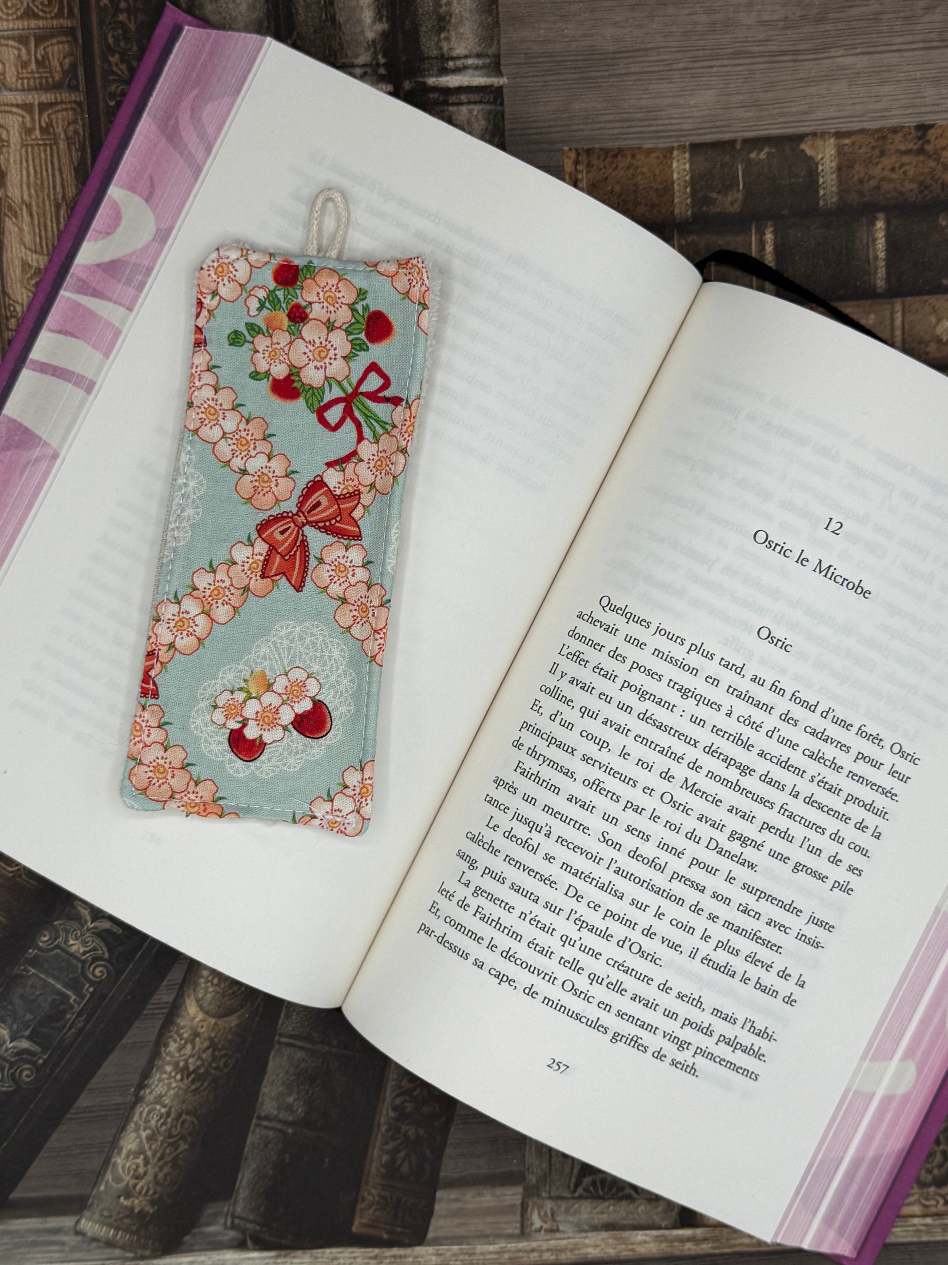 Il est possible d’ajouter un charm à votre marque page, il sera ajouté sur le petit lacet en haut du marque page.