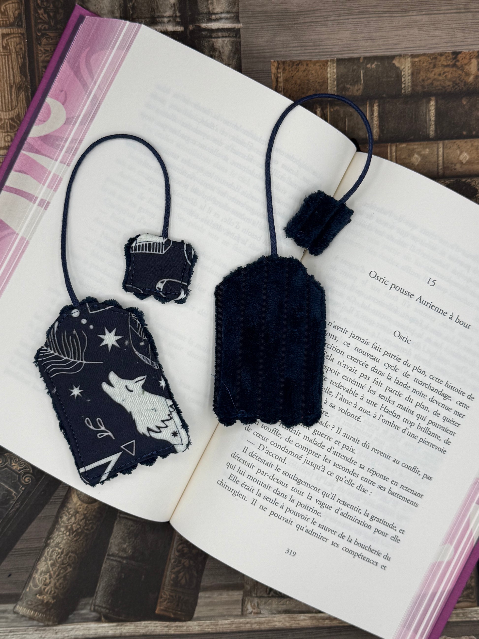 Joli marque page en forme de sachets de thé alliant velours et coton. Ces marques pages sont réalisés à partir de chute de tissus afin de les valoriser.