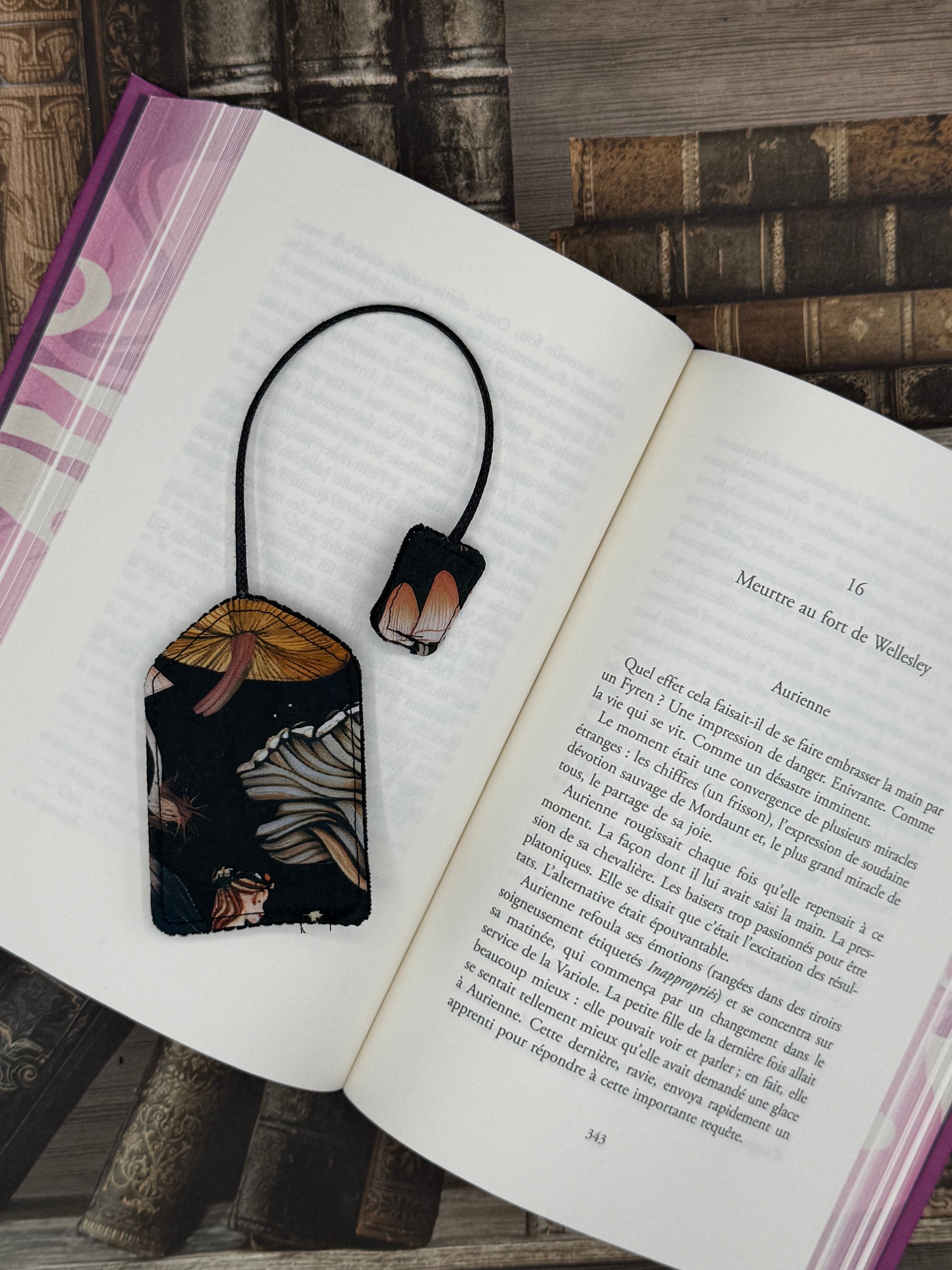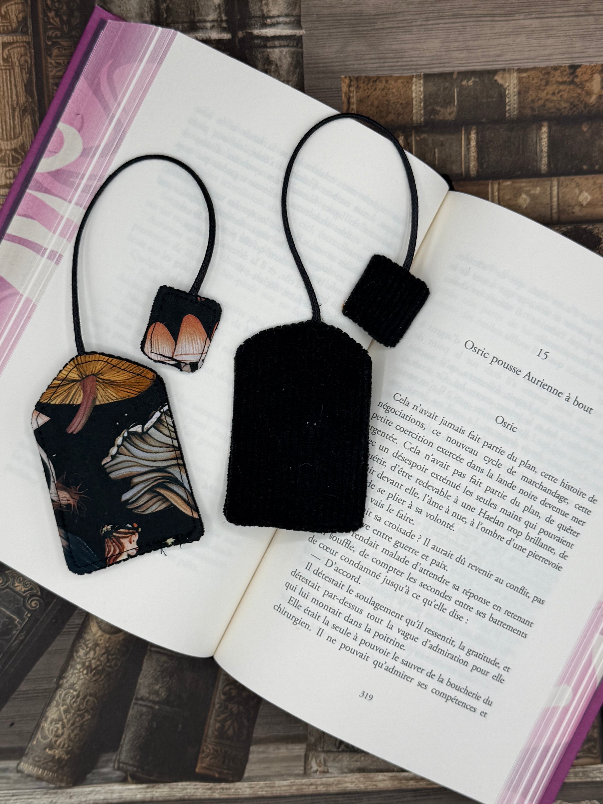Il est possible d’ajouter un charm à votre marque page, il sera ajouté sur le petit lacet en haut du marque page.