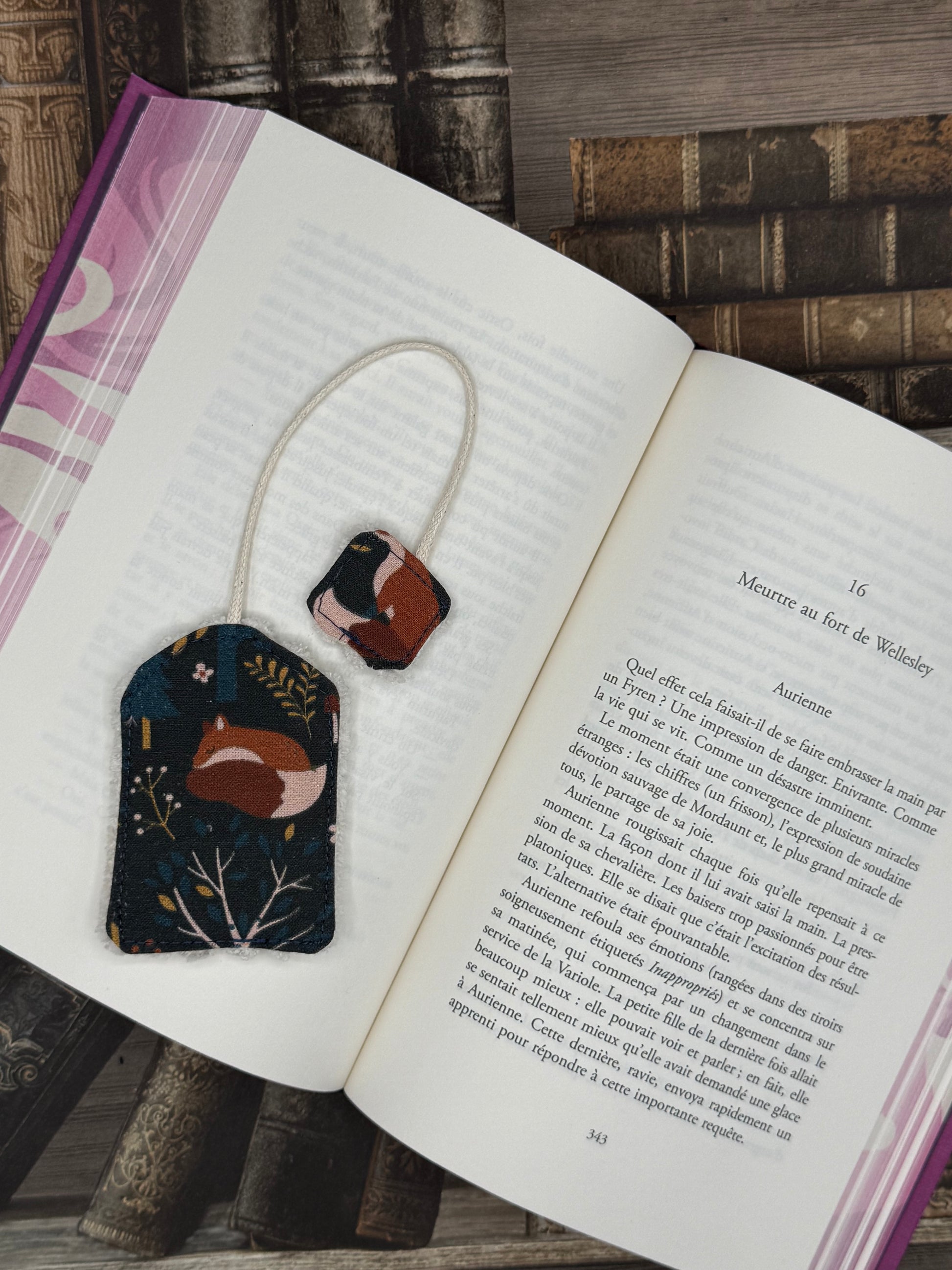 Il est possible d’ajouter un charm à votre marque page, il sera ajouté sur le petit lacet en haut du marque page.
